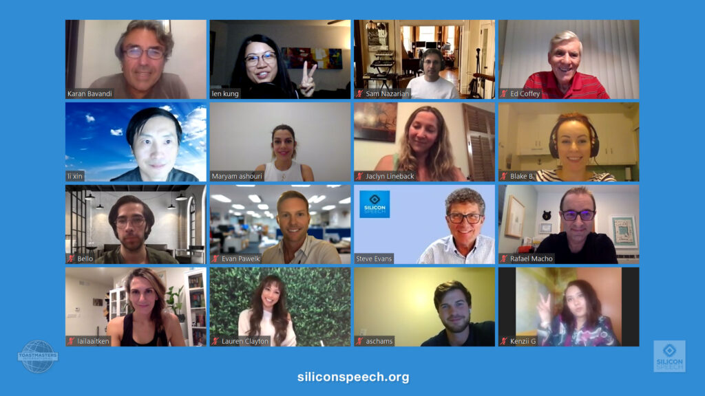 It was our first meeting in November and it was an hour full of verity and inspiration! It was also a welcome respite from all of the election madness. The evening included two terrific speeches and a great Table Topics session conducted by first time TTM, Evan Pawelk. All that’s coming up but first, I want to give a shout out to our new members, Evan Pawelk, Jaclyn Lineback and Maryam Ashouri. Welcome to Silicon Speech!